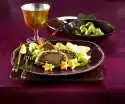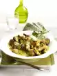 Add cream, 200 ml water, marinade and remaining vegetables. Bring to the boil and season again. Cut the chicken fillets into slices and fill them into an ovenproof dish with the vegetables. Separate the egg. Brush the upper outer edge of the mould with egg white. Roll out 3 slices of puff pastry so that the pastry is approx. 3 cm above the dish all around. Cut out 1-2 holes. Place the dough over the tin and press the edges firmly together. Cut out stars from the remaining dough and decorate the top with them. Spread everything with whisked egg yolk. Bake in the preheated oven (electric: 200 °C/ gas: level 3) for 20-25 minutes. Serve garnished with chervil