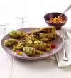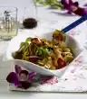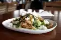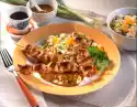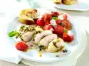 Let simmer for about 15 minutes. Wash the chicken fillets, dab dry. Heat oil in a pan. Fry meat on each side for about 5 minutes. Clean and wash broccoli and cut into small florets. Blanch in boiling salted water for 2-3 minutes, drain and rinse with cold water. Finely puree wild garlic sauce, stir in roux, simmer for about 1 minute. Season to taste with salt, pepper and sugar. Stir in broccoli florets. Whip cream lightly. Cut the chicken fillets open and arrange on plates with the sauce.