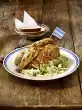 Remove the meat from skin and bones and cut into bite-sized pieces. Season the sauce with lemon juice, Worcester sauce, salt and sugar. Add the vegetables and meat to the sauce and heat briefly.