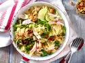 Peel the skin off the chicken. Remove the meat from the bones and cut into pieces. Heat in the sauce for 3-4 minutes. Season with salt, pepper, 1 pinch of sugar, lemon juice and Worcester sauce.