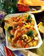 Stir cornflour and 2 tablespoons of cold water until smooth and thicken the sauce. Season to taste again. Cut the chicken. Mix all ingredients. Serve garnished with Asian herbs.