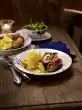Heat the remaining oil in the frying fat. Steam cashew seeds, carrots and chillies for 5 minutes. Pluck off the coriander leaves and fold in. Season with salt and curry, sweat for another 2 minutes. Deglaze with stock and cream, reduce over high heat for 4 minutes.