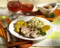 Cook in the preheated oven (electric cooker: 175 °C/ convection oven: 150 °C/ gas: level 2) for 45-60 minutes. For the chutney, peel the onion and cut into thin slices. Pour pineapple into a sieve, collect the juice.