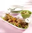 Mix the dressing and season with salt and pepper. Arrange in a bowl. For the glaze, mix honey, 1/2 tsp. chilli powder and 1 tbsp. oil. Coat chicken legs with the glaze about 5 minutes before the end of the cooking time. Wrap the legs in paper sleeves if necessary and arrange on a plate with the salsa.