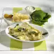 Cover with mozzarella slices and bake in the preheated oven (electric cooker: 200 °C/ convection oven: 175 °C/ gas: level 3) for approx. 30 minutes. Serve garnished with basil.