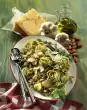 Season with salt and pepper, remove from the pan and allow to cool. Put the noodles in plenty of boiling salted water and cook them for about 10 minutes until they are bubbling. Drain the mozzarella and cut into slices.