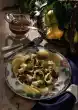 Season everything with salt and pepper. Wash the rosemary and chop finely, except for a little to garnish. Add to the meat and fold in. Garnish the chicken noodle pan with the remaining rosemary.