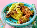 Add the noodles and fry briefly. Deglaze everything with soy sauce and bring to the boil. Season to taste with salt and pepper. Fold in coriander. Serve everything.