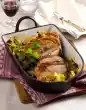 Bake in the preheated oven (electric: 200 °C/ gas: level 3) for 30-40 minutes. Mix mustard, honey and paprika and brush the chicken pieces with it 10 minutes before the end of cooking time. Clean and wash the vegetables. Halve carrots and cut into pieces. Cut leek into rings. Peel, wash and halve the potatoes. Add the carrots and potatoes to the lentils 15 minutes before the end of the cooking time. Add leek for the last 5 minutes. Season to taste with salt and pepper. Stir in cream.