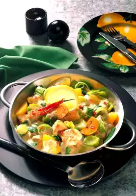 Heat the oil in a frying pan. Brown the meat in it all around. Fry the chopped chilli briefly. Season with salt and paprika. Add the leek and fry briefly. Deglaze with 1/4 litre water and cream.