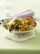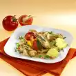 Add garlic, lime, spring onions and half of the herbs with the tomatoes to the chicken and fry briefly. Deglaze with tomato juice and stock. Season again with salt, pepper and paprika. Braise in the preheated oven (electric cooker: 200°C/ gas: level 3) for about 40 minutes. Remove from the oven and serve sprinkled with remaining herbs. Delicious with baguette