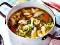 Bring the stock back to the boil. Cook the meat, leek, spring onions and lemon peel for about 5 minutes. Drain the rice and add to the soup with the spinach. Season to taste with salt, pepper and about 2 tbsp. lemon juice. Wash parsley, chop roughly and sprinkle over the soup.