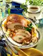 Add 2 tablespoons of oil to the hot frying pan. Fry the potatoes for 4-5 minutes while turning. Add savoy cabbage and garlic and fry for another 2 minutes. Add stock, simmer for about 5 minutes. Add undefrosted peas, broccoli florets, spring onions and legs. Cover and simmer for approx. 25 minutes
