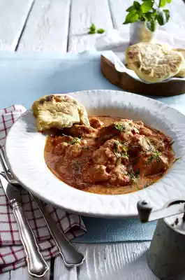 Wash remaining mint, shake dry, pluck leaves and cut into fine strips. Arrange Chicken tikka marsala on deep plates, sprinkle with mint and serve with naan bread.