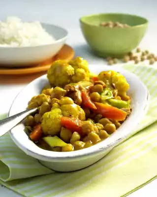Stir starch and 4-5 tablespoons of cold water until smooth. Stir into the curry, bring to the boil and simmer for 2-3 minutes. Season to taste with salt, pepper, cumin and curry paste. Serve the chickpea curry. Serve with rice or flatbread.