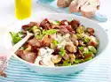 Clean lamb's lettuce, wash thoroughly and drain. Wash parsley, dab dry, pluck the leaves from the stalks and cut into strips. Mix yoghurt, cumin, coriander and 1 tablespoon lemon juice. Clean, wash and dice the peppers. Peel and dice the onion.