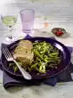 Wash the meat, dab dry. Cook meat in boiling salted water for about 10 minutes, remove and drain. In the meantime, clean and wash the spring onion and cut into fine rings. Clean, wash and cut the bell peppers into small cubes. Chop capers. Put chick peas in a sieve, rinse and drain. Clean and wash the salad, pluck the large leaves smaller and let them drain.