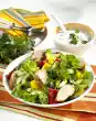 Wash the meat, dab dry, dice roughly. Put on skewers. Season with curry, salt and pepper. Fry in a coated pan in hot oil for about 5 minutes. Arrange on the salad. Sprinkle with orange peel. Add bread