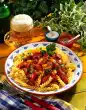 Clean the chilli, cut lengthwise, remove seeds and wash. Add chilli, bay leaf, star anise, cinnamon stick and tomatoes. Simmer for about 20 minutes. In the meantime wash and drain the beans. Peel and wash the potatoes and cut them into approx. 1 cm thick slices. Add the beans to the mince for about the last 5 minutes of cooking time. Grate cheese roughly. Spread a casserole dish (approx. 2 litres capacity) with remaining oil and line the bottom with 1/3 of the potatoes. Spread half of the chili con carne on top and sprinkle with half of the cheese. Spread another third of the potatoes on top.