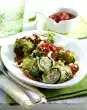 Peel garlic and ginger and chop finely. ##Wash the coriander and pat dry. Pluck off leaves and chop finely. ##Chili##sauce, soy sauce, garlic, ginger and coriander, except for some garnish, mix.