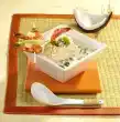 Peel and finely dice the shallots. Clean and wash spring onions and cut them diagonally into approx. 2 cm long pieces. Wash the coriander and pluck the leaves from the stems. Heat the oil in a wok or deep frying pan.