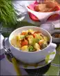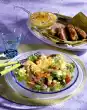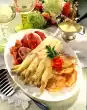 Deglaze with asian stock, bring to the boil briefly. Fold in the cabbage strips. Season to taste again. Serve generously sprinkled with chervil and parsley.