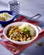 Heat oil in a frying pan and fry the meat while turning. Add spring onions, pineapple, sprouts and frozen peas, braise briefly and deglaze with soy sauce, pineapple juice and about 50 ml water. Bring to the boil, add Chinese Szechuan sauce and simmer covered for 1 minute. Season with salt and cayenne pepper and serve with rice. Garnish with lemon balm as desired