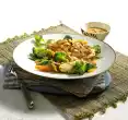 Mix cornflour with a little cold water. Thicken the vegetable pan with it and bring to the boil. Allow to draw through briefly at low heat. Season to taste with salt, soy sauce and pepper. Serve with rice.