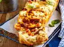 Mix cream cheese and sour cream. Peel garlic and press it through a garlic press. Add to the cream and season with salt and pepper. Serve the chips together with the dips