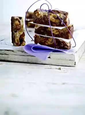 Bake in the preheated oven (electric cooker: 175 °C/ convection oven: 150 °C/ gas: see manufacturer) for approx. 20 minutes. Take out, let it cool down, remove from the tin and cut into approx. 36 rectangles (approx. 6 x 2.5 cm)