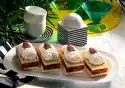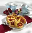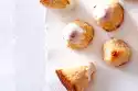 Coarsely chop the couverture separately and place each in a separate bowl. First melt the dark couverture over a warm water bath, then the white couverture. Leave the chocolate coating to cool lukewarm. Pour the white couverture into a freezer bag and cut off a small corner. Pour the dark chocolate coating onto the muffins. Use the white couverture to draw dots and lines on the dark couverture and pull them through with a toothpick. Place banana chips on the chocolate coating and chill for about 30 minutes