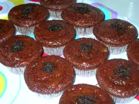 Fill the muffin forms to approx. 3/4 with dough and bake at 180°C for approx. 25 minutes. Spread the still hot muffins with some heated apricot jam and decorate with chocolate sprinkles.