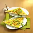 Stir in egg yolks. Mix flour, starch, cocoa and baking powder, sieve over the mixture and fold in. Put the sponge mixture on a baking tray (32 x 39 cm) lined with baking paper and smooth it down. Bake in the preheated oven (electric cooker: 200 °C/ convection oven: 175 °C/ gas: level 3) for about 8 minutes. Soak gelatine in cold water. Mix quark, vanillin sugar, 2 tablespoons of sugar and 1 tablespoon of syrup. Remove the sponge cake from the oven and turn it over onto a tea towel sprinkled with sugar. Remove the paper. Roll the sponge cake with the tea towel from the long side and let it cool down. Squeeze the gelatine and dissolve. Stir in 3 tablespoons of cream, then stir into the remaining cream. Chill the cream until it begins to gel.