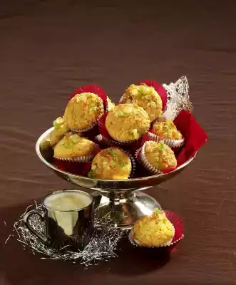 Line the recesses of a mini muffin tray (24 muffins of 25 ml each) with paper sleeves. Pour in the dough evenly and bake in the preheated oven (electric cooker: 175 °C/ convection oven: 150 °C/ gas: level 2) for 20-30 minutes. Remove muffins from the oven, place them on a cake rack and let them cool down. Sprinkle the rest of the fruit mix onto the muffins. Place the muffins in aluminium cups