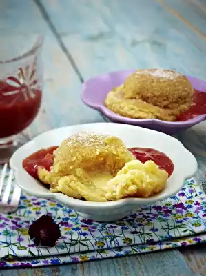 Place the strawberries, lime juice and 1 sachet of vanilla sugar in a tall mixing bowl and puree with a blender. Remove from the oven, let rest for 3-4 minutes and then turn over. Sprinkle with some sugar and serve with strawberry sauce. Add the rest of the strawberry sauce