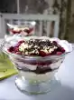 Mix the crème fraîche and vanilla sugar. Whip the cream until stiff, fold in and cut the cake into approx. 20 cube-shaped pieces. Serve with strawberry salad and vanilla cream.