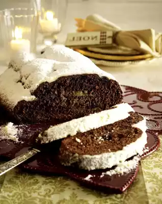 Then switch the temperature down (electric oven: 175 °C/ circulating air: 150 °C/ gas: stage 2) and bake for a further 25-30 minutes. Melt 125 g butter. Take the stollen out of the oven, immediately brush with 1/3 of the butter and dust with 50 g icing sugar.
