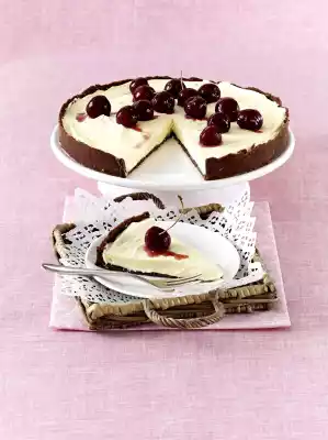 Whip the chocolate cream with the whisk of the hand mixer until stiff, allowing the cream firm to trickle in. Fill the cream into the springform pan and smooth it down. Chill the cake for about 1 hour. Heat up jam and 1-2 tbsp. water and stir until smooth. Dip the cherries into the jam or spread them on the cake and let them cool down for about 3 minutes. Spread the cherries on the cake