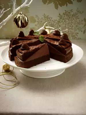 Cut the lid into 16 cake pieces and place them on the chocolate cream. Pour the rest of the cream into a piping bag with a perforated nozzle (15 mm Ø) and spray one tuff onto each cake piece. Chill for about 30 minutes.