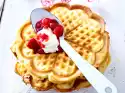 Cut out 12 circles (approx. 5 cm Ø) from the sponge cake base (use the leftovers for other purposes). Pour cranberry cream into a piping bag with a large spout and squirt it about 2 cm thick onto 6 circles.