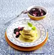 Remove crêpe from the pan, bake 3 more and let them cool down for about 15 minutes. Fold the crêpes to a quarter. Fill the lower part with quark cream and the upper part possibly with some cream and grapefruit compote. Sprinkle with the remaining almond flakes and dust with icing sugar. Decorate with mint