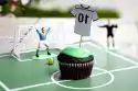 Pass the icing sugar through a sieve. Mix with 5 tablespoons of water to a smooth glaze. Colour it grass-green with green food colouring. Spread the icing evenly over the muffins and leave to dry for about 1 1/2 hours. Decorate with wooden skewers with jerseys