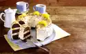 Whip the cream with the whisks of the hand mixer until stiff. Pour into a piping bag with star-shaped spout and squirt onto the cakes as tuffs. Decorate with strawberries.