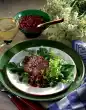 Pour into portion bowls and let cool. To decorate, spread the rest of the chocolate and couverture thinly on a board (no wood) and chill. Use a spatula to form fine rolls. Just before serving, decorate desserts with chocolate rolls and mint leaves as desired