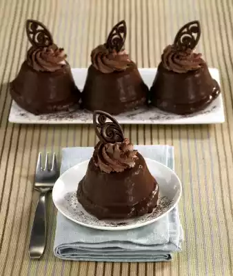 Melt 325-425 g couverture with plate fat in a hot water bath. Turn muffins over so that they are on top. Cover with the couverture, allow to dry