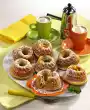 Place 2-3 paper baking cups inside each other and possibly put them into a muffin tray (approx. 100 ml content per cup). Fill in about 1 tablespoon of dough each. Press the rest of the tangerines on top and bake in the preheated oven (electric cooker: 175 °C/ convection oven: 150 ° C/ gas: level 2) for about 20 minutes. Let it cool down