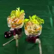 Whip 600 g cream, 2 p. vanillin sugar and cream setting agent until stiff. Stir in 5 tablespoons of liqueur. Quarter the cake. Cut each plate 1 x crosswise. Fill with cream. Before serving cut into 6 pieces