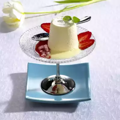 Pour the mixture into 4 small moulds or cups (each containing approx. 150 ml). Freeze for at least 6 hours. Wash and clean the strawberries. Cut 150 g strawberries into slices. Cut the remaining strawberries into pieces, puree finely with 100 g sugar and 3 tablespoons of sparkling wine. Mix 1 egg yolk, 1 egg, 25 g sugar, 2 tablespoons champagne and vinegar. Whip over a hot water bath until thick and frothy. Dip the ramekins briefly in hot water and turn out onto 4 plates. Arrange strawberries, purée and sabayon around them.