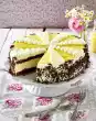 Finely chop the couverture and carefully melt over a warm water bath. Whisk 2 egg yolks, 1 egg and 50 g sugar in a hot water bath until thick and creamy. Stir in the couverture. Cool off in a cold water bath. Whip cream until stiff and fold in.