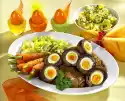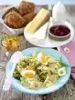 Mix 1 egg yolk, 1 egg, 25 g sugar, 2 tablespoons champagne and vinegar. Whip over a hot water bath until thick and frothy. Dip the ramekins briefly in hot water and turn out onto 4 plates. Arrange strawberries, purée and sabayon around them. Decorate with mint and dust with icing sugar. Serve immediately